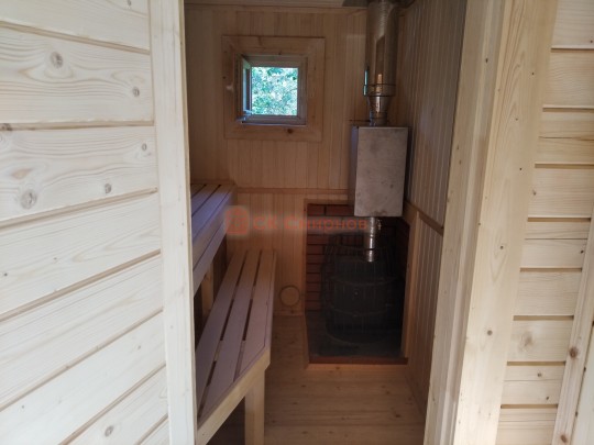 Баня состоит из одного этажа и включает три помещения: комнату отдыха размером 4х2 м, моечную и парное помещение одинаковых размеров 2х2 метра. Модель на видео построена из сухого кедрового профилированного бруса 90х140 и полностью оборудована под ключ. Строительство велось нами от фундамента до отделки, включая установку душевого и печного оборудования.