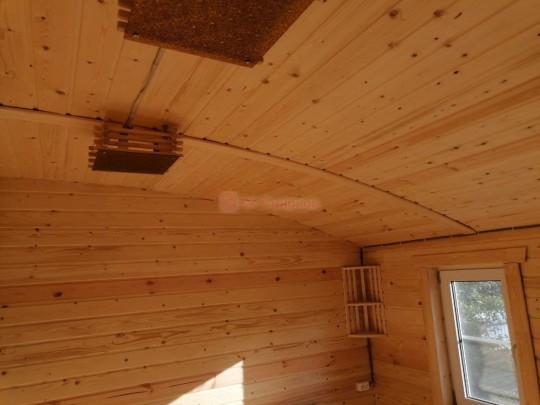 На потолке под вагонкой и на крыше над утеплителем делается вентзазор рейкой 16-18 мм для вентиляционного зазора.