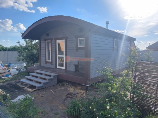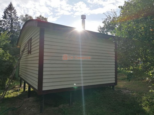 В марте 2020 завершили строительство бани 4х5,3 из кедрового бруса камерной сушки с компенсационными пропилами по авторскому проекту. Баня построена полностью под ключ от свайно-винтового фундамента до отделки.
