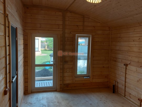 В данной бане мы используем окна вытянутой формы не открывающиеся по умолчанию, но можно за небольшую доплату сделать их открывающимися.