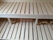 В комплект бани входит стол и две скамейки из доски 19мм, как на фото. Есть комплекты из более толстой доски а также из кедра, смотрите в доп комплектации.