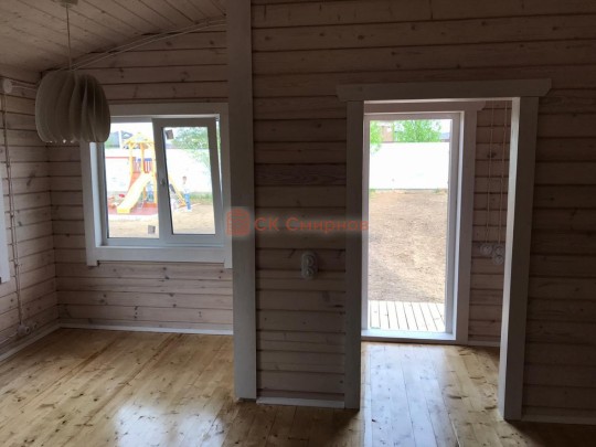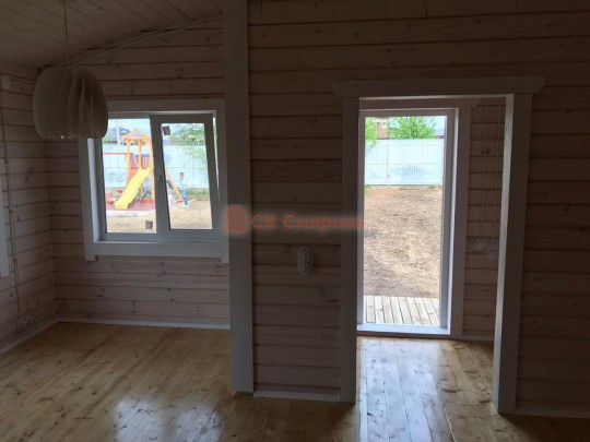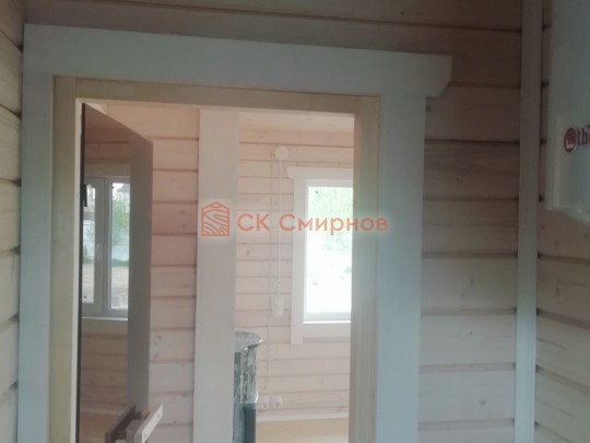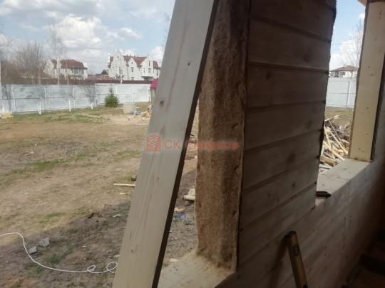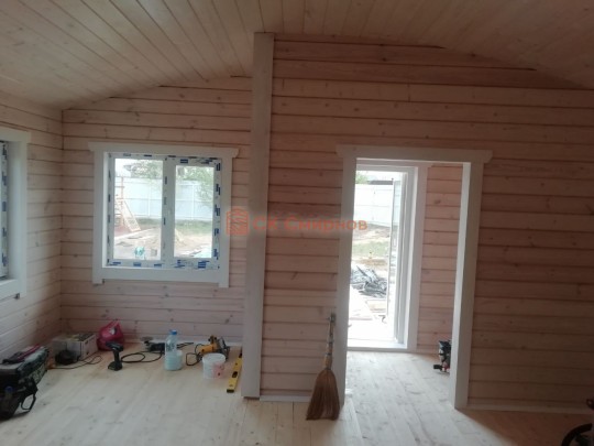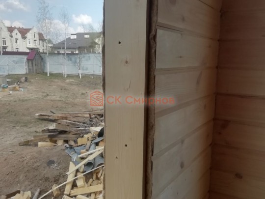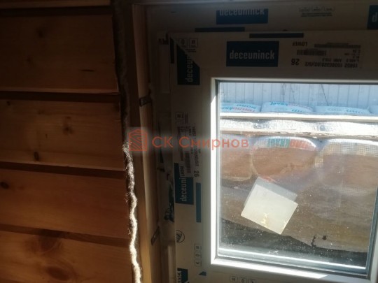 Обязательный элемент брусового дома или бани, это брусок в пиленный в брус в проем двери или окна не менее 50х50мм. Обязательно должен оставаться зазор сверху на усадку и этот брусок не должен быть жёстко закреплен в проеме. В некоторых случаях внутри помещения ставим металлические ройки, уточняйте. Посмотрите отрывок видео как могут повести себя стены