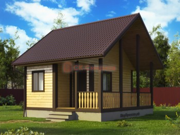 Авторские проект одноэтажной бани «Шале» с необычной округлой крышей, высокими панорамными окнами и небольшой террасой. Такую баню можно построить только из сухого или клееного профилированного бруса в комплектации под ключ. Из бруса естественной влажности и под усадку построить НЕВОЗМОЖНО.