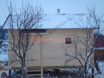 Мы не экономим на материале и делаем удлинённые свесы кровли, которые отлично защищают фасад от снега и дождя.