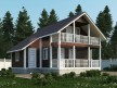 На фото представлен проект загородного дома №163 габаритами 7.5х8 метров и отличной планировкой общей площадью 98 квадратных метров. Можно выделить несколько особенностей проекта: терраса, балкон, веранда, туалет, ванная, санузел. Объект с мансардой, может использоваться как зимний, для постоянного проживания.