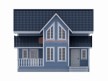 На фото представлен проект жилого дома из бруса №260 габаритами 8х9 метров и отличной планировкой общей площадью 134 квадратных метров. Можно выделить несколько особенностей проекта: терраса, туалет, ванная, санузел, панорамные окна, два входа и две террасы. Первый этаж — это сруб из бруса, рекомендуем заказывать из сухого или клееного. Мансарда собирается по каркасной технологии.