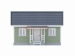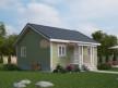 На фото представлен проект минималистичного дачного дома №269 габаритами 8х8 метров и отличной планировкой общей площадью 68 квадратных метров. Можно выделить несколько особенностей проекта: терраса, двускатная крыша, санузел. Это одноэтажный дом с нежилым чердаком, лестницы внутри нет.