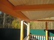 На террасе при условии что она есть делаем перила из строганной доски со всех сторон, столбы террасные также строганные, а не обрезки профилированного бруса с шипом и пазом. Домкратики на столбах для дальнейшей регулировки. Балясины будут сделаны аккуратно. Обратите внимание что в дешёвых случаях это может быть и будет просто вагонка прибирая к неотесанной доске снаружи и столбы будут не квадратные а просто профилированный брус как на видео.