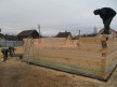 Из 9х14см, 14х14 см или 14х19 см. Сборка сруба в теплый угол на нагеля или гвозди 200 мм со сверлением отверстия в верхнем брусе (в зависимости от вида бруса).