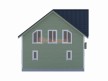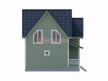 На фото представлен проект дачного дома №255 габаритами 7.5х8.5 метров и отличной планировкой общей площадью 124 квадратных метров. Можно выделить несколько особенностей проекта: эркер, туалет, ванная, санузел, панорамные окна. Коттедж полутораэтажный, может использоваться как зимний, для постоянного проживания, коттедж.
