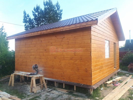 В июне 2020 в самом начале тёплого летнего сезона завершили строительство небольшого дачного домика каркасной сборки под ключ. Дом самый простой, планировка типично дачная, но всё сделано очень аккуратно и из хороших материалов. Это именно тот самый добротный эконом-класс от СК Смирнов.